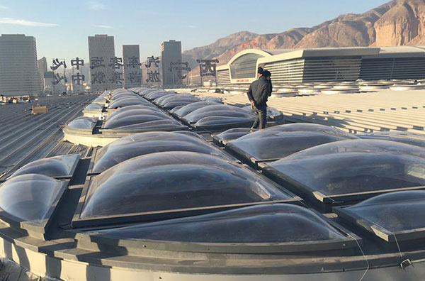 天窗还可根据客户要求加工制做穹状球形、圆拱形、金字塔形式尖锥形等各种形式单曲面及双曲面的屋顶天窗、成品PC采光罩、FRP大型采光顶、幕墙玻璃采光顶等等。圆拱型固定采光罩适用于不需要通风排烟、只需要采光且不允许阳光强烈直射及采光洞口较大的场合。